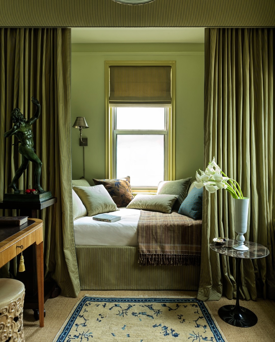 Обирайте один і той самий відтінок у світлішій та темнішій версії. Це дозволить створити об’єм: наприклад, світлий — на стінах, середній — на дерев’яних деталях, глибокий — на дверях.