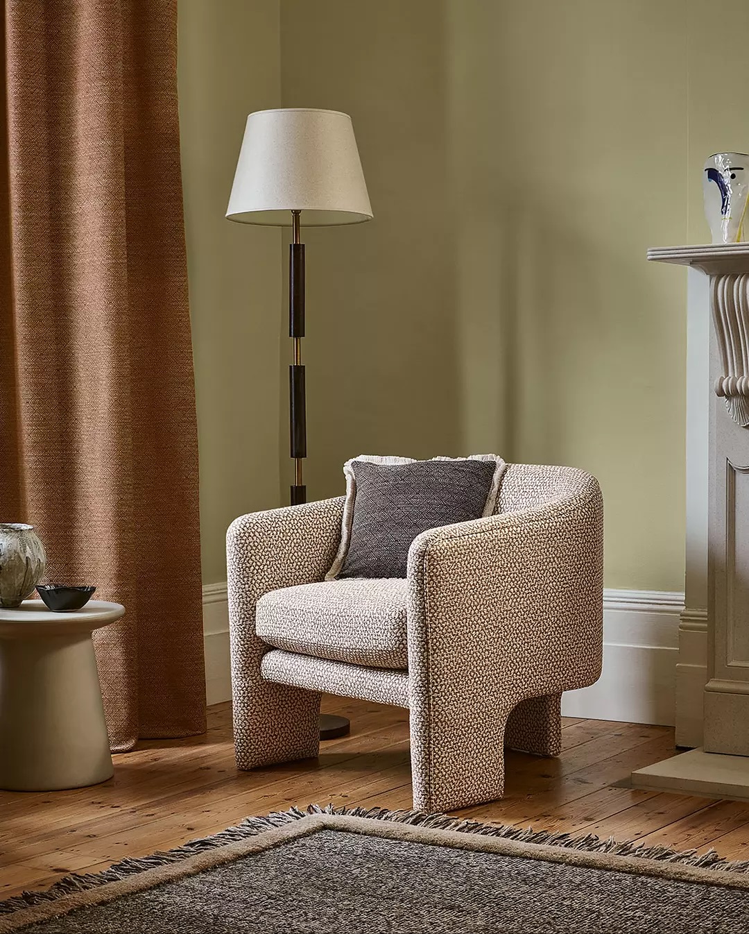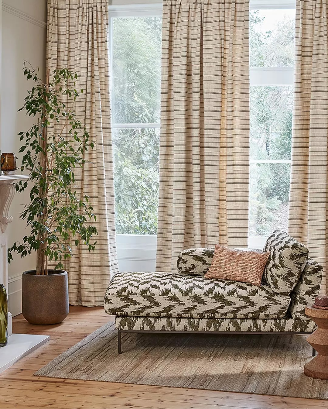 Асортимент бренду охоплює все: від делікатних лляних тканин, декоративних вишивок до технологічно та естетично довершених EasyClean, фактурні шпалери, панно і килими узгоджені за кольором і ритмом. Виробництво базується у Великій Британії, а терміни доставки — до 8 тижнів.