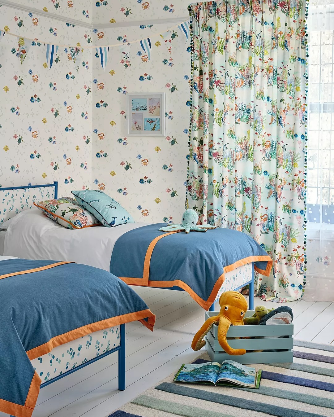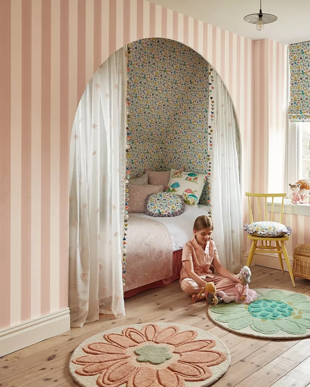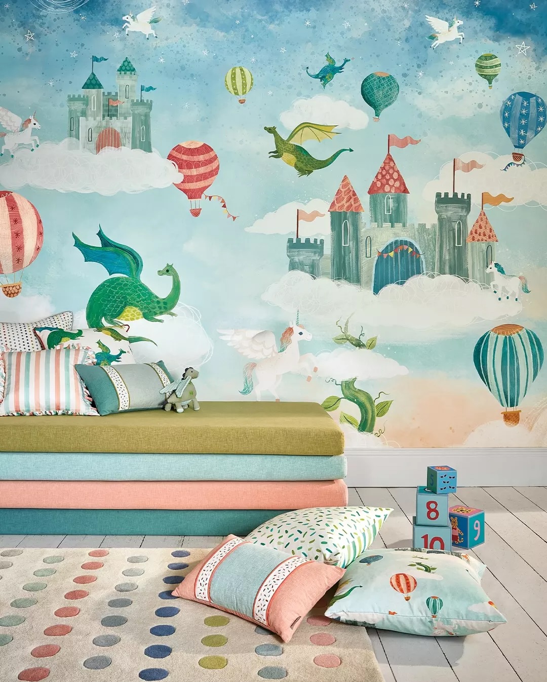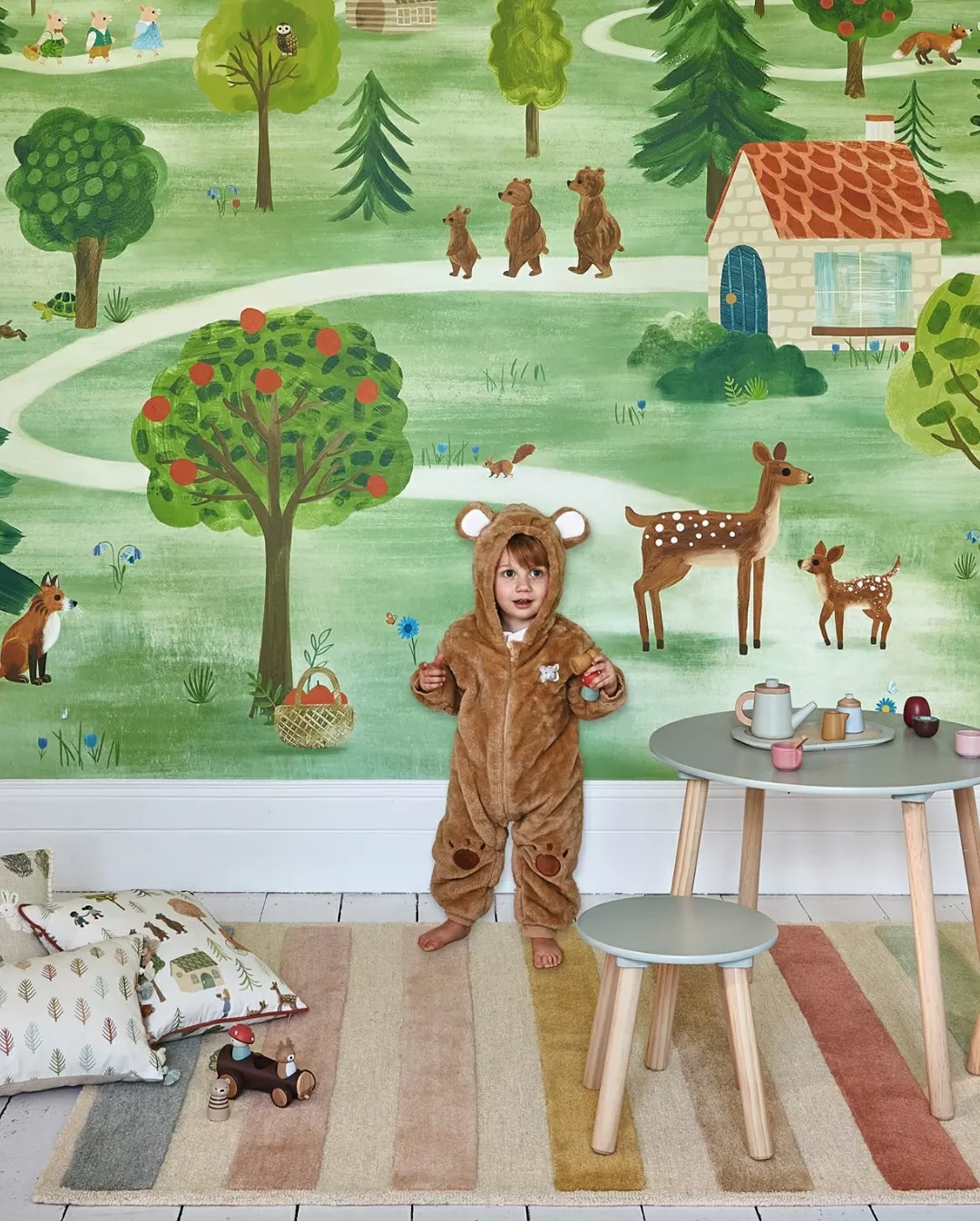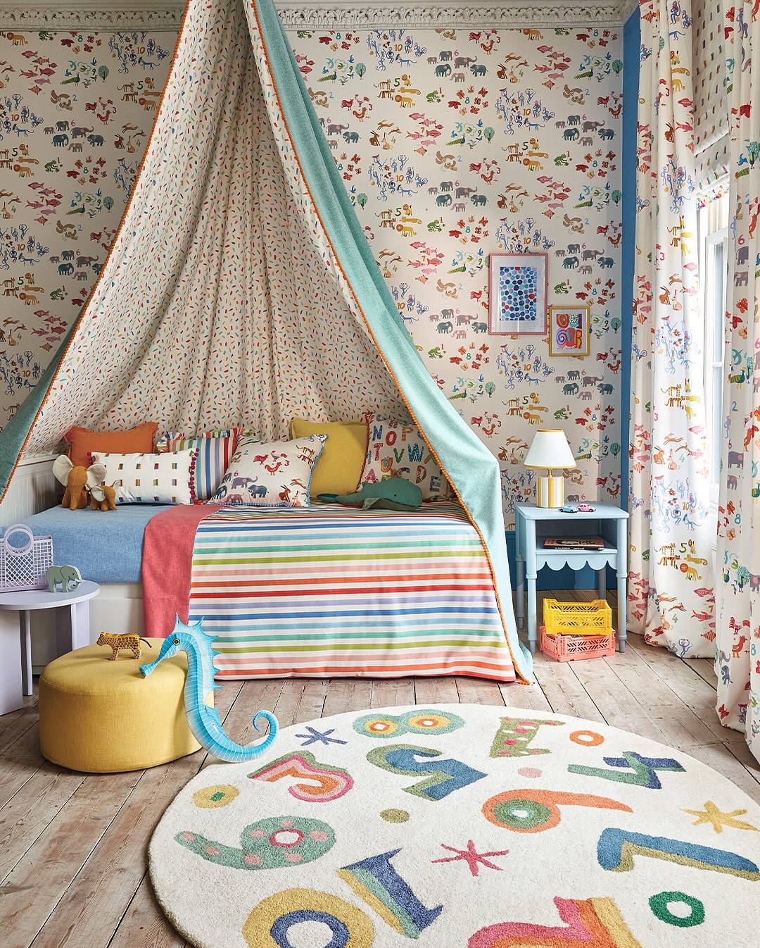 Колекція від англійського бренду VILLA NOVA Picturebook II rugs - килими, створені за ілюстраціями Frann Preston-Gannon, Christopher Corr та Yuval Zommer. Вони переносять у світ дитячих книжок, пригод і фантазій. Килими поєднуються зі шпалерами та текстилем цієї ж колекції, тому дитяча кімната може виглядати як цілісний простір. Від нічного неба до лісових історій чи веселих барвистих світів.