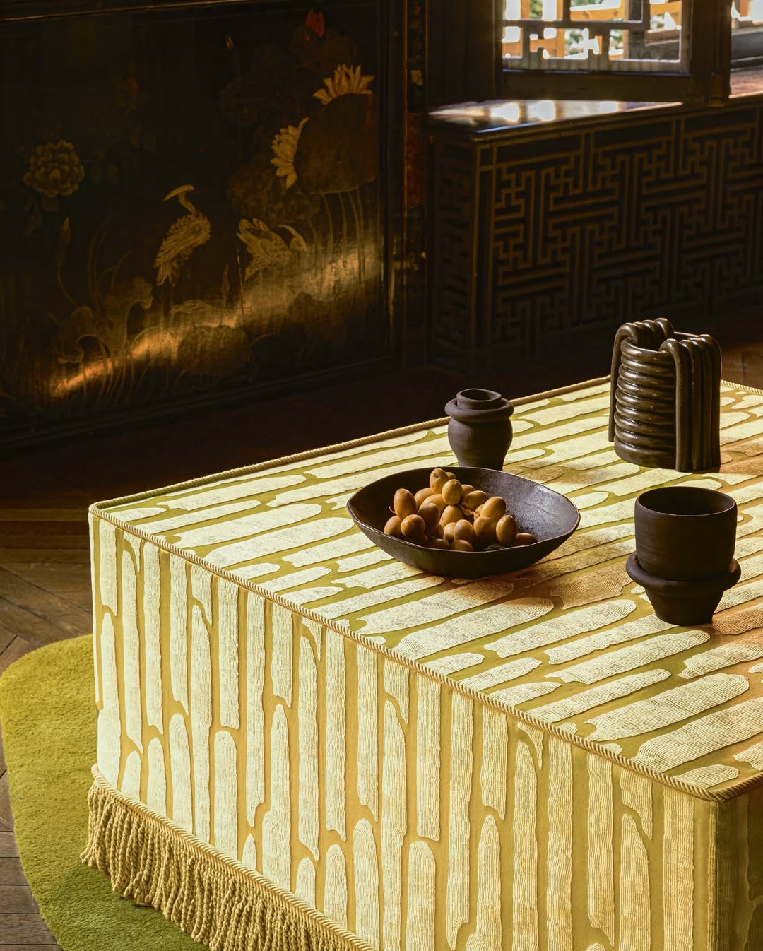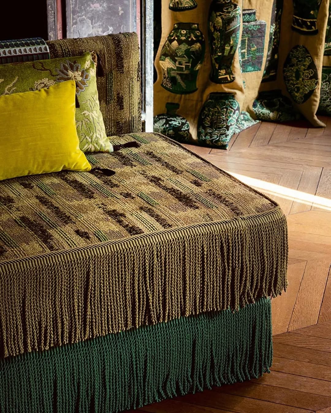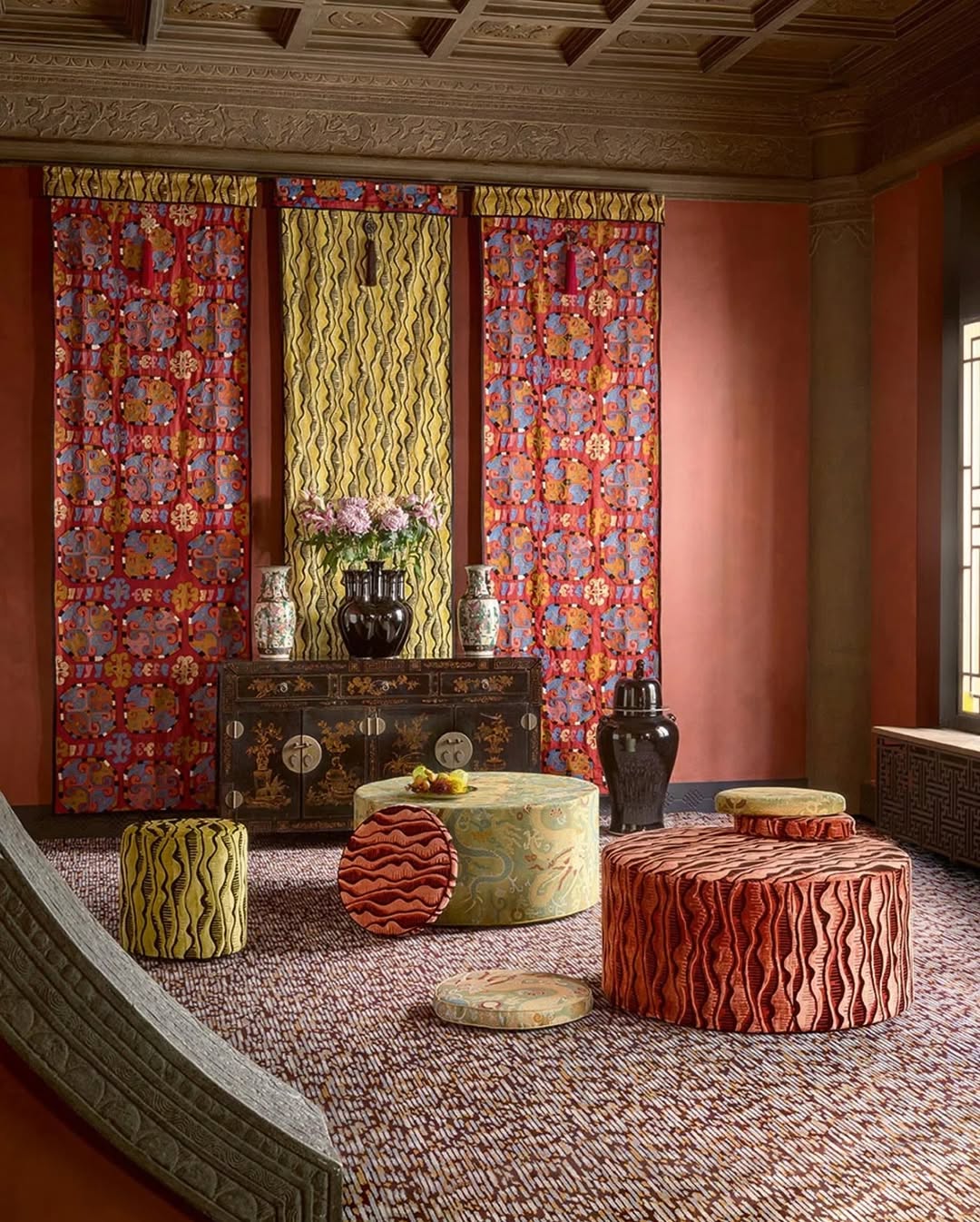Завдяки такому діапазону Soleil Levant дозволяє створювати інтер’єр як композицію контрастів: зробити акцент важкими, «скульптурними» драпіровками чи оббивкою й урівноважити їх легшими лляними або шовковистими площинами. Це колекція, у якій матеріал працює не менш виразно, ніж орнамент.