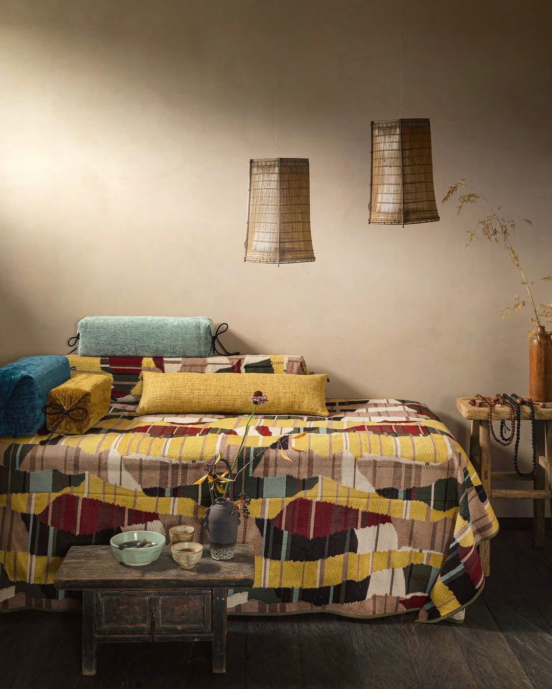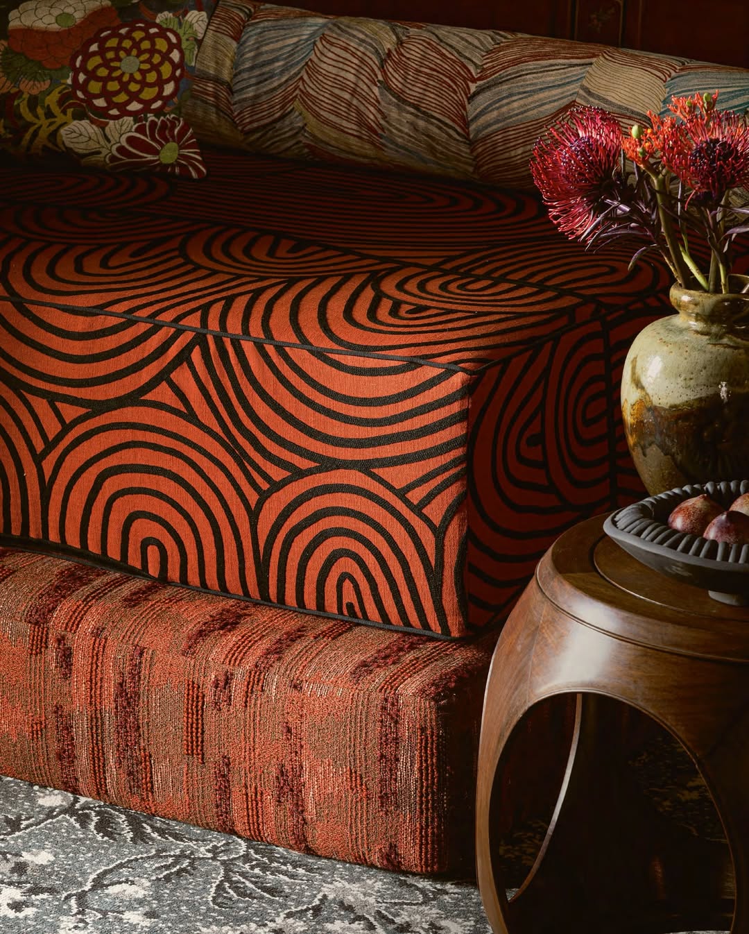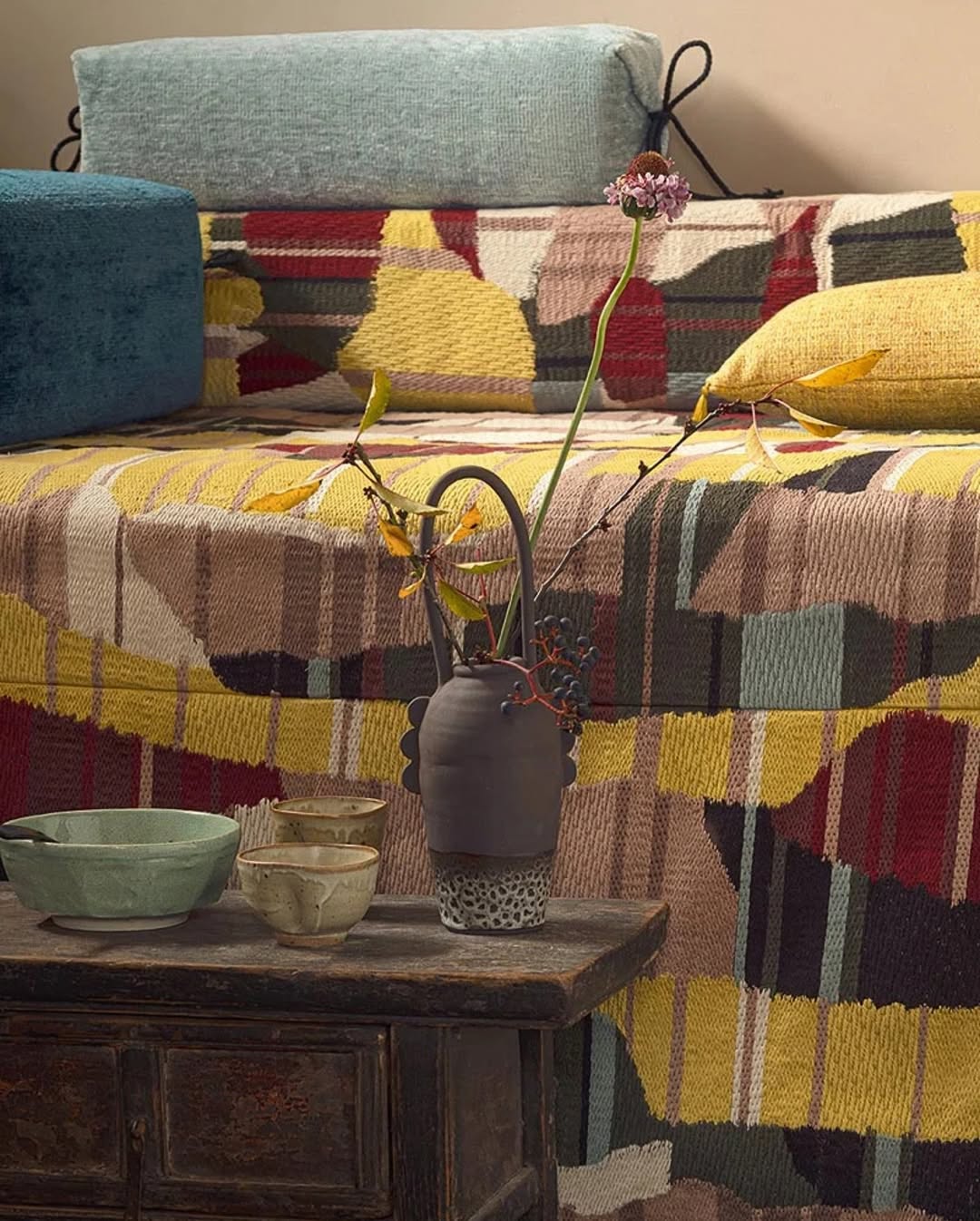 Завдяки такому діапазону Soleil Levant дозволяє створювати інтер’єр як композицію контрастів: зробити акцент важкими, «скульптурними» драпіровками чи оббивкою й урівноважити їх легшими лляними або шовковистими площинами. Це колекція, у якій матеріал працює не менш виразно, ніж орнамент.