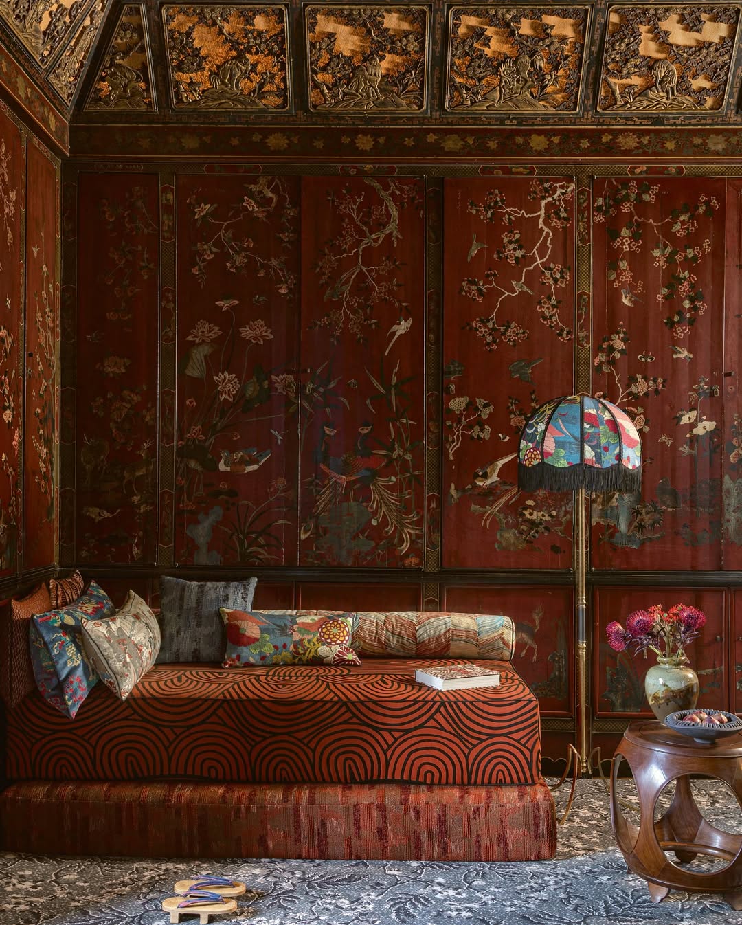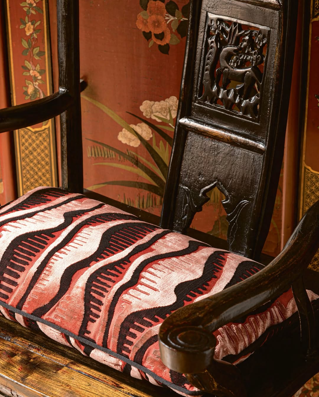 Pierre Frey Soleil Levant — звучить як обіцянка подорожі в інший світ, у країни Сходу з їхнім тисячолітнім мистецтвом, унікальними ландшафтами та особливим ремеслом. Колекція натхнена філософією Wabi-Sabi, поєднує в собі відчуття гармонії та цінність ремесла. На важких фактурних полотнах зображені образи реальних і міфічних істот — тигрів і драконів, китайських порцелянових візерунків, традиційних японських і тибетських орнаментів.