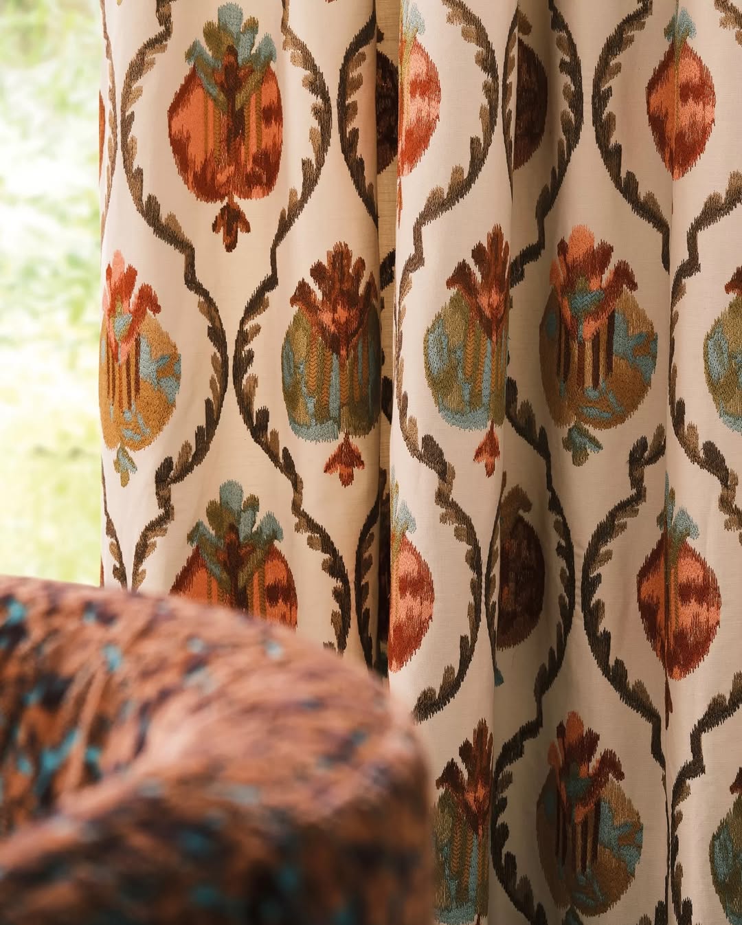 Mysore - вишита аркова решітка зі стилізованими гранатами в насичених, ювелірних кольорах.