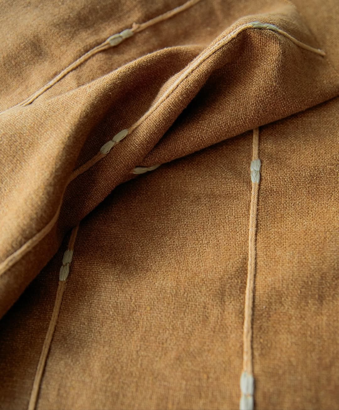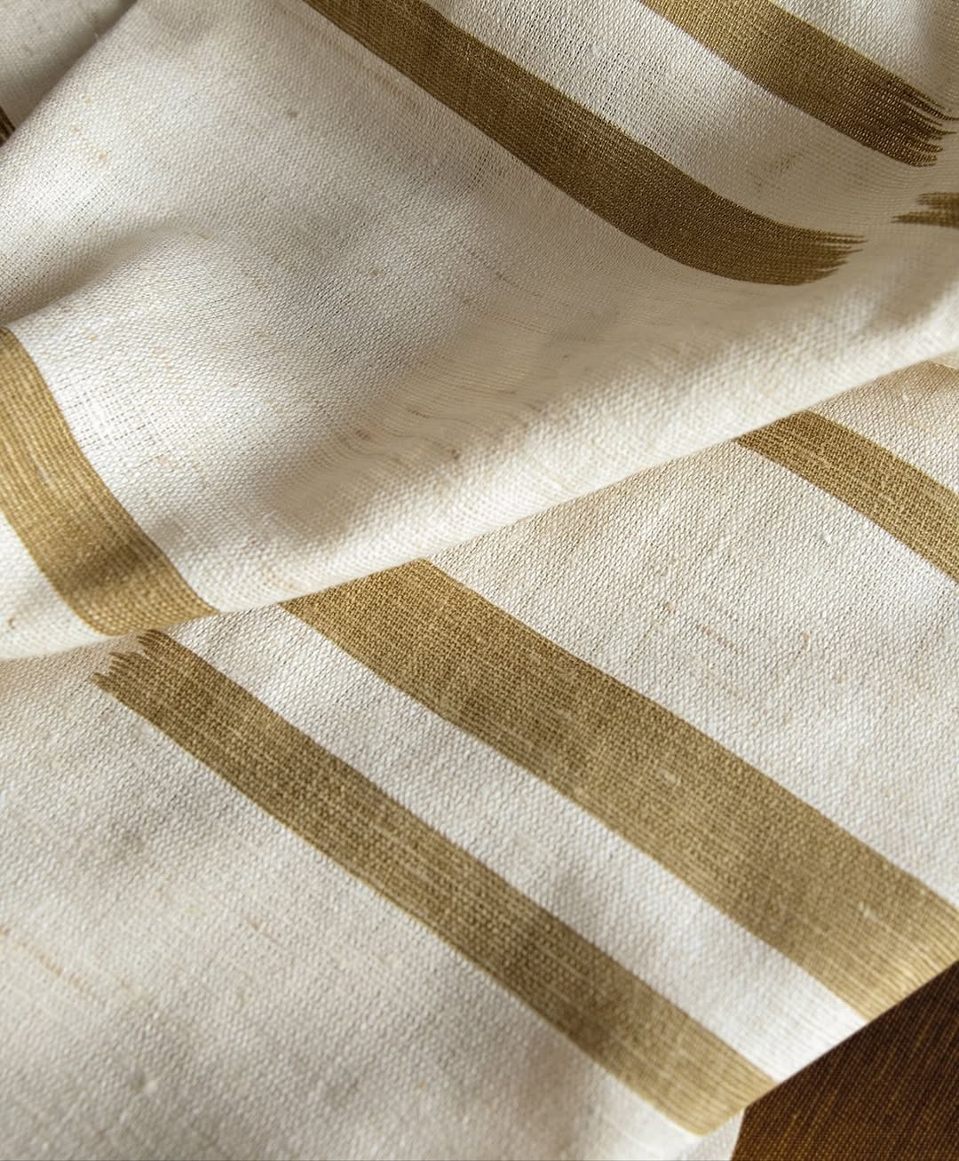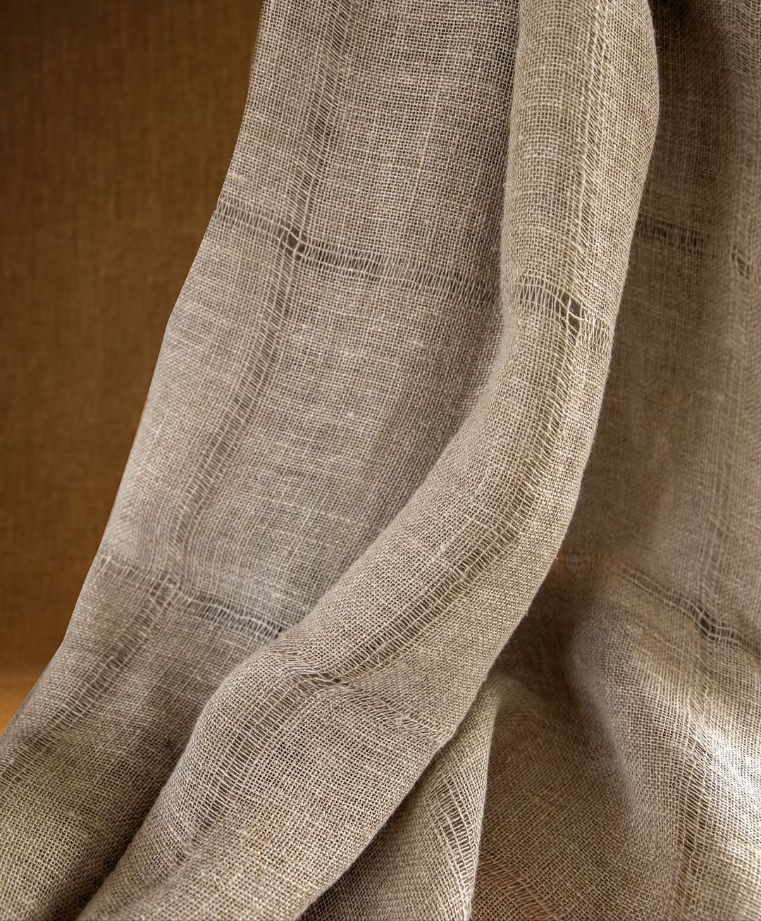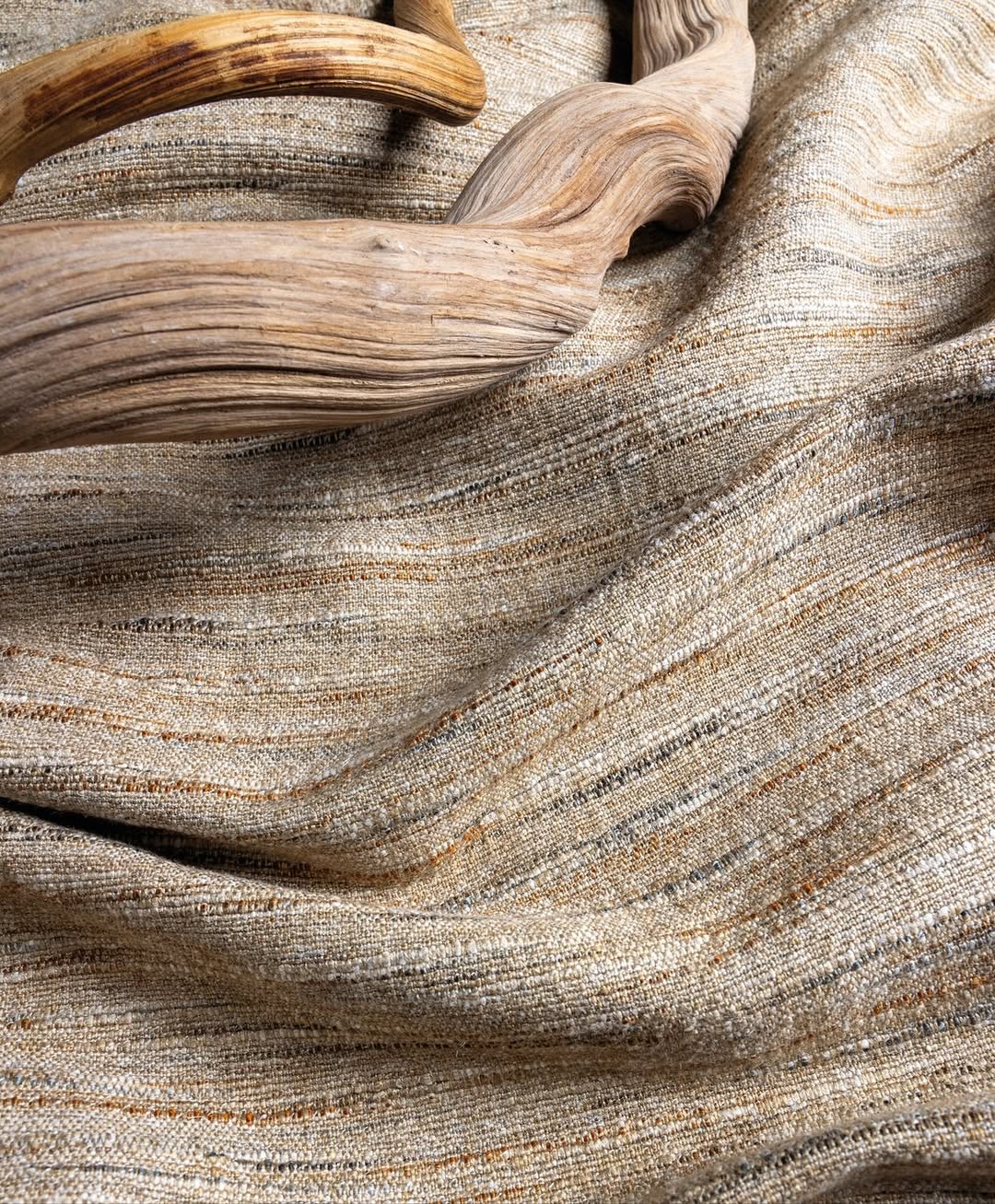 У цих тканинах є щось первинне — те, що повертає людину до природи, до відчуття справжнього. Тонко прядений льон, шовк із природним м’яким блиском, бавовна, що зберігає тепло рук майстрів, і перероблений шовк, який отримує друге життя. Кожне волокно дихає, рухається, відгукується м’якістю й чесністю матеріалу.